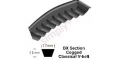 BX v belts are a "cogged" style belt that can interchange on the same pulleys as "B series" or "5L series" belts. The BX belts can generate higher horsepower ratings due to the raw edge construction, which grips the pulley much better. Request a Quote.